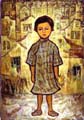 小女孩手持一朵野花,站在家的前面。1942年時到現在,小女孩已經變成祖母。