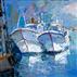 劉國東1992年的〈停泊〉,有10多名點景人物,散佈在10多艘船隻停靠的岸邊,氣氛溫馨和諧。畫家以藍白色調為主,輔以紅黃暖色,寧靜中透出活潑的精神。這件作品具有熱鬧而不喧嘩的氣氛,人們在日光飽滿的天空下快樂的生活,一如劉國東其他品的與世無爭。