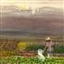 他的廟宇畫作,有些是遠觀著迎媽祖遊行,畫裡的元素包括人物、廟宇、街道與兩旁建築物;有些則是微觀虔誠的祭拜者如何在香煙裊裊、充滿歲月感的廟裡訴說他的心願。他所選取的人物大都是年輕女性,並以側面的姿態出現。女性的溫柔美,可以說是母親給人們一種溫暖護衛的象徵。