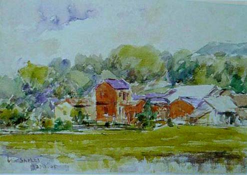 1925年陳植棋和倪蔣懷一同寫生,主題是陳家紅樓。那時倪蔣懷曾在畫中地點附近的礦坑承包煤礦,這裡是這兩位畫家好友時常相邀寫生的地方。當時倪蔣懷還為陳植棋畫了一張人像鉛筆素描,顯示畫家間的的情感。(資料由倪蔣懷家屬提供)
