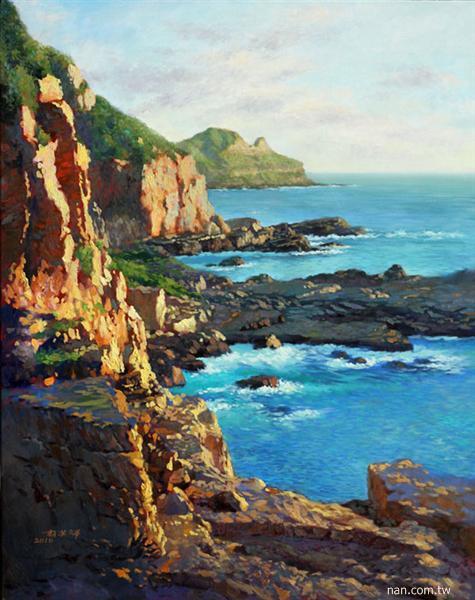 塊和綿密不綴的筆法表現出台灣東北角最波瀾壯闊的美麗景致。
